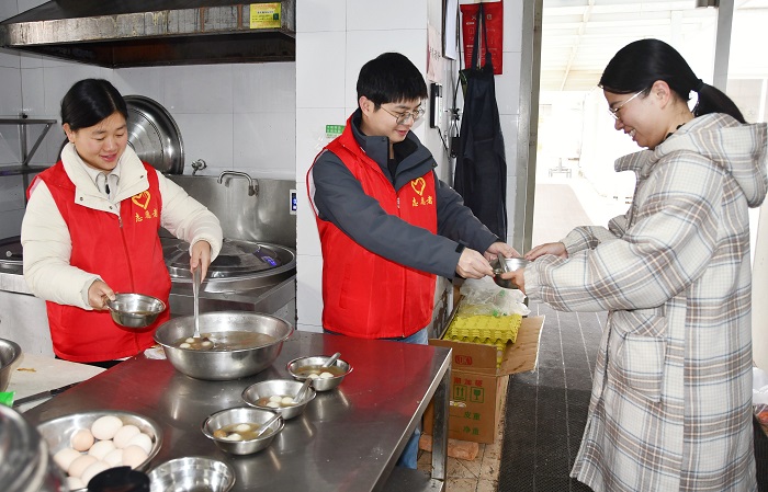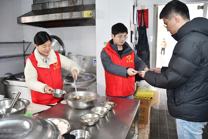 志愿者煮好黑芝麻、花生、猪肉等多种口味的汤圆,给前来就餐的职工递上一碗又一碗热气腾腾、象征团团圆圆的汤圆,为大家送上节日的祝福和温暖。在吃汤圆的同时,大家畅聊了元宵佳节的习俗,在欢声笑语中感受着传统文化的魅力。(张莉)